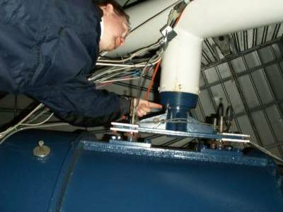 After you come in the door there is a large metal box to your left. There are three switches on the front of it. Flip the right-most and middle switches up to turn on the stepper motors for the focus, filters, X-Y, and RA-DEC.